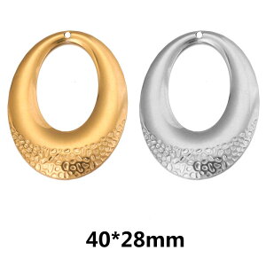 楕円形のオーバルの貝殻のようなデザインのDIYできるようにチャーム用の丸穴を開けたステンレス製のクラフトパーツ。 別売りのマルカンやバチカンを使ってピアスやアンクレット、ネックレスやチョーカー、ブレスレットやペンダント...