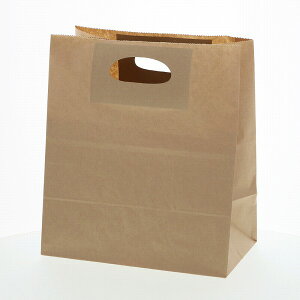 無地の角底袋に持ち手用の穴をあけました。 持ち手穴はは裏から当紙で補強してあります。 ポリ製の袋に代わる持ち帰り用の袋に最適です。 ●入数:25枚 ●サイズ:幅240×マチ150×高275mm ●素材:未晒クラフト紙 【ご注意ください...