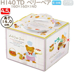 ベリーベアの商品詳細 かわいいデザインの業務用 ケーキ箱 4.5号。 TD(手提げデコレーションケーキ箱(ホールケーキ 箱))。 可愛いくまさんシェフがホールのショートケーキをもっていて、 その横にイチゴが入ったバケ