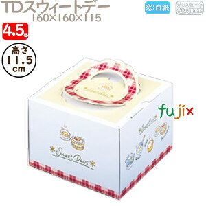 TDスウィートデーの商品詳細 サイズごとに色違いが使いやすいと好評の業務用 ケーキ箱 4.5号。 TD(手提げデコレーションケーキ箱(ホールケーキ 箱))。 高級感を演出するプレスコート(光沢加工)。 窓は白紙です...
