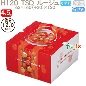 H120 TSD ルージュの商品詳細 おしゃれないちごイメージの業務用 ケーキ箱 4.5号。 TD(手提げデコレーションケーキ箱(ホールケーキ 箱))。 高級感を演出するプレスコート(光沢加工)。 窓は白紙です...