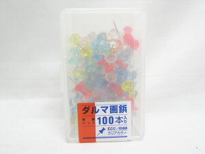 クリアでカラフルなダルマ画鋲が100本入りです幅:60mm高さ:100mm奥行:40mm