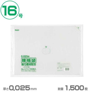 規格袋 ポリ袋 LD規格袋 16号。メタロセン配合の協力ポリ袋!材質:(LLDPE+META) 色:透明 厚さ:0.025mm サイズ:340×480mm。