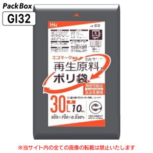 材質 直鎖状低密度ポリエチレン(LLDPE)→柔らかくよく伸びるツルツルとした手触り。サイズ 30L(500×700mm)。カラー 黒。厚み 0.03mm。仕様 エコマーク入→国内再生原料を40%使用。