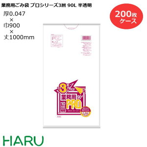 業務用ごみ袋 90L プロシリーズ3層 厚口 半透明 R-93●素材:3PLY0.047mm サイズ:横900×丈1,000mm 梱包:10枚1パック/200枚ケース。