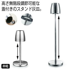 高さ無階段調節可能な蓋付きのスタンド灰皿。スタンド灰皿は蓋付きの設計で、気密性抜群です。タバコの煙や吸殻の飛び散りを防ぐことよにって、匂いを遮断することが可能。また蓋を締めれば火が消すことになるため、安全性も考えられ