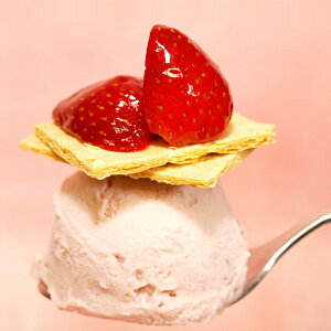 見た目もかわいいミルフィーユ仕立てのジェラート。 いちご風味のジェラートにしっとりパイと苺スライスをサンドしてとても可愛いミルフィーユ仕立てに仕上げました。 ほのかに漂う甘〜い香りと甘酸っぱいフレッシュ苺、しっとりパイ