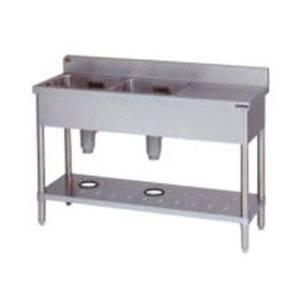商品概要品名:二槽台付シンク・バックガードあり●外形寸法(間口×奥行×高さ×バック):1500×600×800×150×60mm●排水口:50A×2●備考:SUS304シリーズ(受注生産品)●台部分が右側。メーカー希望小売価格はメーカ...