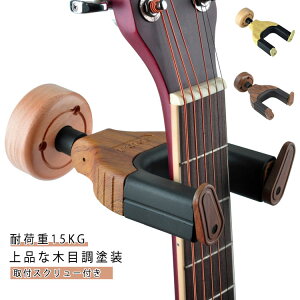 ギターハンガー ギタースタンド 壁掛け 木製 ギターホルダー 安定 エレキ アコギ ベース兼用 ロック【木製+ゴム+メタル】メイン素材が木材で、天然的な木目の外観はアコースティックギターにもっと合っています...