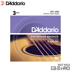 ダダリオのアコースティックギター弦「PHOSPHOR BRONZE EJ26-3D CUSTOM LIGHT」4パック(12セット)です。1974年から生産が始まったフォスファーブロンズ弦。そのサウン...