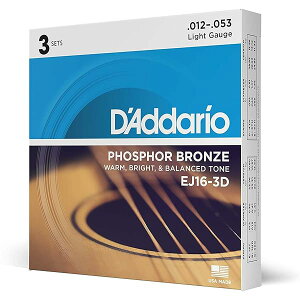 D'Addario ダダリオ アコースティックギター弦 フォスファーブロンズ Light .012-.053 EJ16-3D 3set入りパック。ブランドD'Addario(ダダリオ)色3セットパックモデルEJ16-3D...