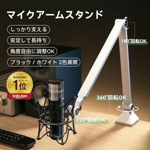 【高級マイクためのスタジオ級ブームアーム】このマイクアームを浮かせることで振動が伝わりにくく、雑音混入を減らし、マイクが持つ高水準音質に引き上げます。複数調節ポイントと360度回転ポジショニングで、広い可動範囲ともの凄く