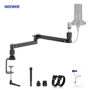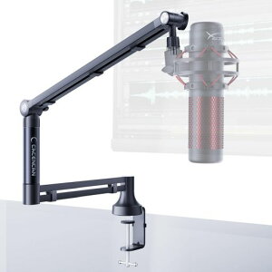 *商品説明: 【ダンピング機能付き薄型マイクアーム卓上マウント】 ●マイクスタンドは、アルミニウム合金製で、2本の関節アームと厚さ0.8"-2.7"デスク用スーパーCクランプを備え、最大荷重1.5kgでマイクを常に安定させ...