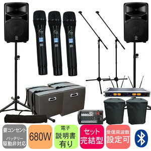 StagePAS600BT(スピーカー2本・パワードミキサー1個・スピーカーケーブル付き)/スピーカー収納用ケース(プラダン)×2/受信機収納用1Uラックケース×1
