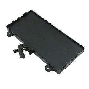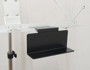 折り畳み譜面台等に取り付け、チューナーや電子メトロノーム、筆記用具などを置くことができるラック。滑り止めシートつき。 ●カラー:黒 ●小物置きスペースサイズ:約14cm×約6cm×約4cm ●材質:プラスチック