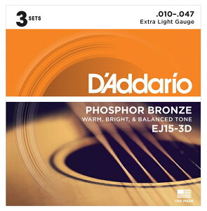 定番アコギ弦が3セット入ったお買い得なセット!このモデルは、定番のアコースティックギター弦の「D'Addario EJ15」が3セット入っております。