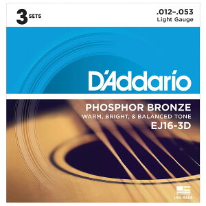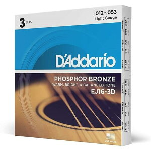 商品名 【未開封】 DAddario ダダリオ Phosphor Bronze Light Gauge アコースティックギター弦 アコギ弦 EJ16 .012-.053 3個セット 【加治木店】 メーカー...