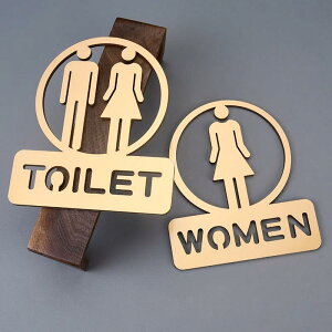 ・カテゴリ: トイレ表示板・主な素材: アクリル・サイズ: 15x13cm・スタイル: 透かし彫り・カラー展開: 女性用(金色)、男性用(金色)