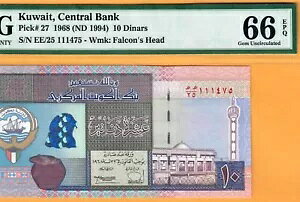 KUWAIT-10 DINARS-1994-SCARCE SIGN. 8-S/N 111475-PICK 27 **PMG 66 EPQ GEM UNC**商品について循環/非循環 非循環紙幣の種類1968 年 (ND 1994)国 ...