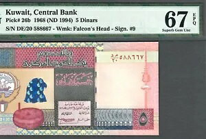 KUWAIT-5 DINARS-1994-SCARCE SIGN. 9-S/N 588667-P.26b *PMG 67 EPQ SUPERB GEM UNC*商品について循環/非循環 非循環製造国/地域 クウェートPMG認証グレード...