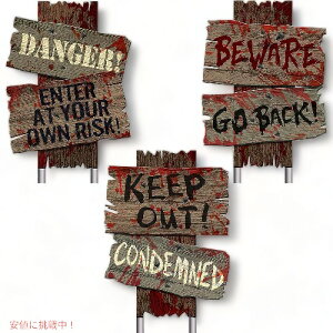 不気味な木製のような歩道標識 3 種類のセット。それぞれのサイズは 12 インチ x 9 インチで、本物の幽霊のような雰囲気を作り出すのに最適です4 「立ち入り禁止! 非難」、「危険」、「注意」、「自...