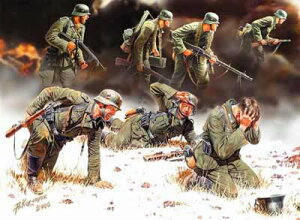 空襲の生き残りにも軍服と武器を支給すれば、一時的に歩兵部隊の定数が満たされて発案者が昇進したので良し、な国民擲弾兵を再現。食料は無いので長くはもちません。殺した敵兵の方が一生悪夢を見続けます。エッチングパーツ付き。未来は無し
