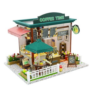 つくるんですから人気のRobotime社製ミニチュアハウス・ドールハウスのDIYキットが日本語説明書付きで登場! こだわりの一杯を楽しめる、お気に入りのコーヒーショップ。 おしゃれなライトが3個もついた店内は、コーヒーミルやストック瓶