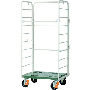 【特長】●樹脂製底板が横に跳ね上がるため、たたんだときに転倒しづらい製品です。●縦補強が無い為バーコードが読みやすいです。●ブレーキサインプレート式キャスターを使用しています。●間口側、背面側のどちらからでも、荷物の