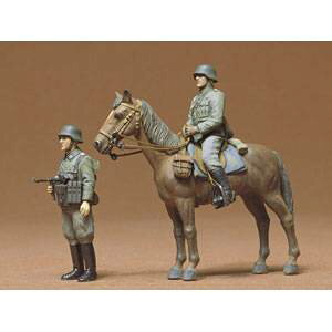 軍馬にまたがる第二次大戦中のドイツ陸軍将校をリアルに再現したプラスチックモデル組み立てキットです。自然なプロポーションでモデル化した静止姿勢の馬1体、乗馬中の将校1体に加え、立ち姿でMP40サブマシンガンを構える将校も1体セット。馬は...