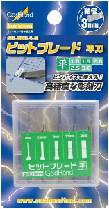 ゴッドハンド「ビットブレード 平刀 5本セット」は ピンバイスで使える精密彫刻刀ビットです。 刃幅を組み合わせることで長モールドが 石も彫れる丈夫さ、ハンコの彫刻にも使用可能。 3mm軸を固定できるピンバイスでご使用いただけます。