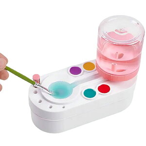 筆洗いバケツは、タンク給水式で筆を洗うごとに水交換ができる便利アイテム。従来の大型バケツに比べ少ない水で絵筆の洗浄ができ、洗浄ごとにきれいな水が使えます!4色パレット付きの最新版、水彩画を手軽に楽しめます。使い方簡単。