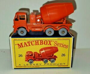 vintage matchbox 26 cement lorry mint in box with grey wheels amp; silver trimヴィンテージマッチボックスセメントローリーミントグレーホイールシルバートリムボックス