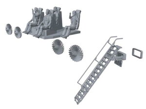 ■商品説明1/144 海自の哨戒機、P-1用のディテールパーツセット。パイロットフィギュアx4体、エンジンファンx4、機内収納式のタラップをセットしました。大きくて透明度の高いクリアパーツ越しに見えるパイロットが臨場感をアップします。