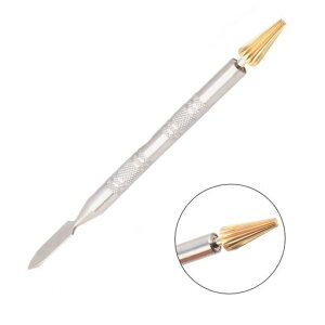 星(白抜き)仕樣:サイズ:長さ128mm。材質:ステンレス鋼。 星(白抜き)ワックスをつけてコバとかにちょうどいい量で塗ることができます。 星(白抜き)革の切り口処理や木端仕上げ剤を合わせて使う道具です。 星(白抜き)ペン先端は回転し...