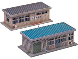 商品セット構成・2棟入り ・塩ビ板 ・組立説明書(パッケージ台紙に記載)■製品はグレーの成型色(未塗装) ■組立完成後のサイズ=長さ82mm×幅40mm×高さ25mm■駅や電車庫の敷地内に最適な近代的な詰所です。 ■パッケージ台紙の裏面には