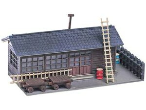 商品セット構成・1棟入り ・塩ビ板 ・組立説明書(パッケージ台紙に記載)■製品はグレーの成型色(未塗装) ■組立完成後のサイズ=長さ76mm×幅37mm×高さ37mm■乗務員・保線作業員用の小規模な木造詰所です。 ■保線用トロッコ・ハシゴ・