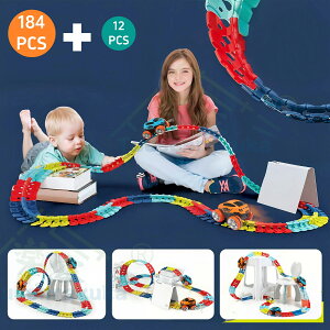 【商品説明】 【自由に組み立てて遊べる】立体レール&ミニカーセット|LEDライト付き・3節7号電池対応・46/92/138/184pcs ■ 想像力と集中力を楽しく育もう LEDライト搭載のミニカーと...