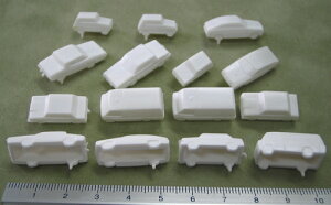 材質:スチレン樹脂カラー:ホワイト【サイズ】(高さ×幅)mm:7.9×10.3長さ:26.2mm(一番長い車で)スケール:1/200 5つのスタイルが、ランダムに15個入っています。
