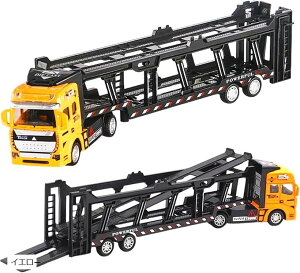 【本格スケールで迫力の遊び体験】キャリアトラックは全長33cmの1/48スケールで、まるで実車のような存在感を放ちます。キャビン部分にはダイキャストを使用し、しっかりとした質感と重量感が手に伝わります。荷台は2階建て仕様で、ミニ