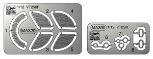 精密感溢れるエッチングパーツでさらに作り込む!ステンレス製エッチング2枚セット■【新規エッチング】フロントブレーキインボードディスクのメッシュ■フロントブレーキパイプ用のガイド