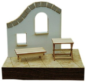 本体サイズ:椅子 高49mm 幅39mm 奥29mm。 机 高54mm 幅50mm 奥35mm。 組み立て、塗装が必要なキット。別途、工具、塗料等が必要。