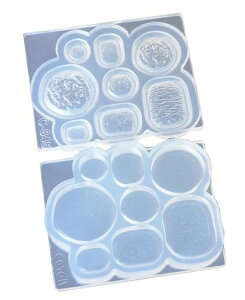 シリコーン製ミニチュア用型抜き 樹脂粘土をはじめとする自然乾燥粘土、オーブン粘土、UVレジンなどでご使用頂ける便利なシリコーン型 丸型と角型のリアルなクッキーがそれぞれミニチュアの4サイズ作成可能 仕上がりサイズ(約):A(丸)Φ15x4/