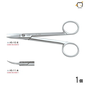技工用ハサミ ●#S-10直と#S-210直、#S-11曲と#S-211曲は、それぞれの作業部の形状は同じですが、柄の形状が異なります。 商品名 金冠バサミ CROWN SCISSORS 医療機器届出番号 09B2X000100000...