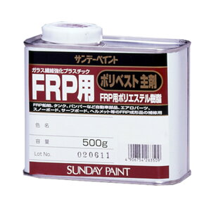 【用途】 FRP形成品の補修・作成等。 【特徴】 ポリエステル樹脂(主剤)のことでガラスマットなどのガラス繊維と併用し硬化剤を添加、硬化させることでFRPになります。 【仕様】 ●カラー:アメ色。 ●容量:500g。 ●塗面積:約0....