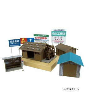 情景シリーズの田舎風景です。※写真の色調はご使用のモニターの機種や設定により、実際の商品と異なる場合があります。サイズ水車小屋:W80×D48×H40mm 、小屋1:W48×D37×H38mm 、小屋...