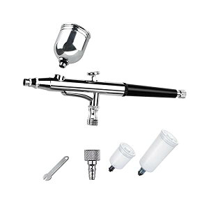 【ダブルアクションエアブラシ0.5mmノズル径】口径は0.5mm、平型広口タイプのニードルキャップ。吐出量が多くてもミストが細かく、綺麗に広がることですね。 【コンパクト・使い勝手】エアブラシは銅製で耐久性があります...