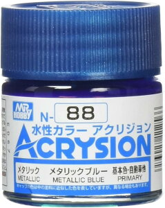 GSIクレオス 「アクリジョン メタリックブルー 10ml」 模型用塗料です。 アクリジョンは乾燥時間の遅さや塗膜の弱さ、有機溶剤による臭いの問題を解決し、安全と塗装環境の改善を目指した、新世代のエマルジョン系水性塗料です...