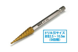 パーツや板材への丸穴加工に便利な、ステップタイプのドリル刃!■プラスチックモデルのパーツや、板材への丸穴加工に便利なステップタイプのドリル刃(単品)です。当社従来品「HGステップドリル」のバリエーション製品となり、ドリ