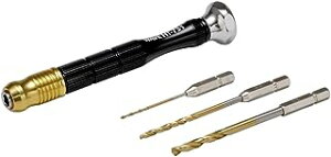 商品説明 ドリル刃がワンタッチで交換できる便利なピンバイス(穴開け工具)です。特殊構造の取付部を採用し、ドリル刃の交換をワンタッチで行うことが可能です。 使用頻度の高いサイズの専用ドリル刃3本(1.0/2.0/3.0mm)が付属し、すぐに