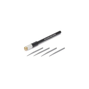 商品説明 ●プラスチックやレジンパーツ等スジ彫り作業に役立つ精密ノミ ●手前に引いて彫刻していくタイプのスジ彫り用工具です。 ●さまざまな場所のスジ彫り作業に対応できるように刃幅は4種をラインナップ ●本体表面には刃幅をレ